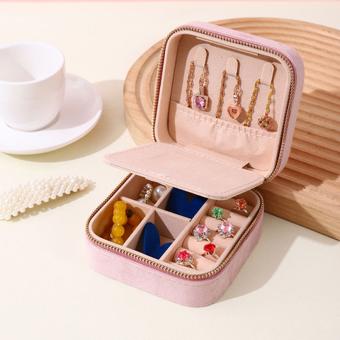 Joyero de viaje pequeño con logotipo personalizado, organizador de caja de almacenamiento de terciopelo a la moda, abierto para anillo, pendiente, collar, embalaje de regalo para mujer