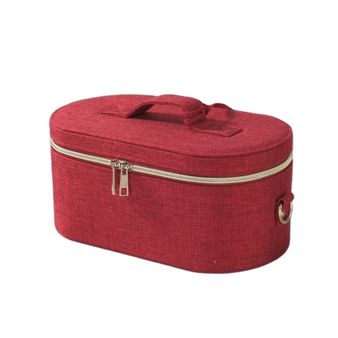 Estuche de maquillaje de cuero PU de lujo redondo grande personalizado de fábrica Cajas de regalo Moda elegante con correa para el hombro