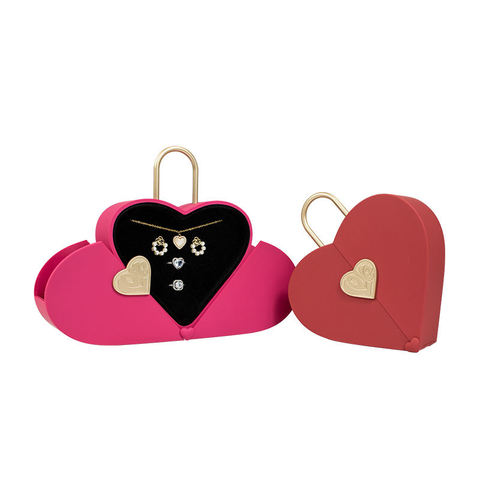 Caja de bloqueo con forma de corazón abierto, caja de regalo de embalaje de joyería de cuero de doble cara, asa para el Día de San Valentín, Día DE LA Madre, Acción de Gracias