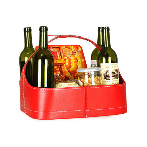 Venta de fábrica Cesta de regalo de hotel Cesta de almacenamiento de regalo de Año Nuevo de cuero Pu Cestas de frutas de vino para regalos