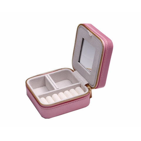 Lujo señora PU Durable portátil viaje joyería organizador cremallera almacenamiento Cajas de Regalo anillos pendientes collares moda abierto